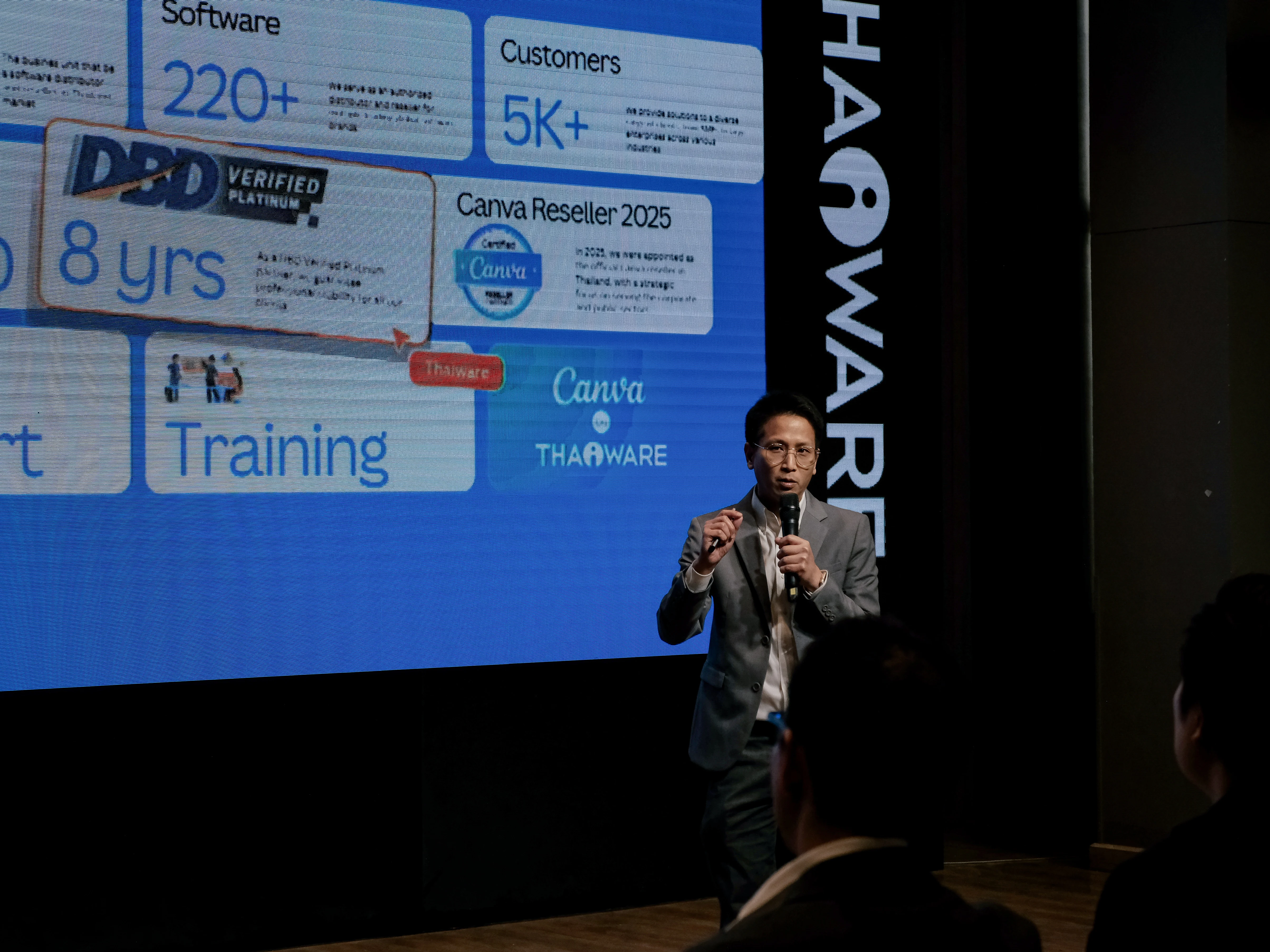 ภายในงาน ธรรณพ สมประสงค์ กรรมการผู้จัดการ บริษัท ไทยแวร์ คอมมิวนิเคชั่น จำกัด กล่าวถึงบทบาทของ Thaiware Shop ในการเป็นผู้ให้บริการจัดจำหน่ายซอฟต์แวร์ลิขสิทธิ์อย่างครบวงจร ด้วยประสบการณ์ยาวนานกว่า 20 ปี และยังได้ประกาศถึงความเชื่อมั่นที่ Thaiware Shop ได้รับการแต่งตั้งจาก Canva ประเทศไทย ให้เป็น Enterprise Reseller Partner รายแรกในประเทศ พร้อมความมุ่งมั่นในการผลักดันการใช้งาน Canva ในธุรกิจด้วยทีม Support ของ Thaiware